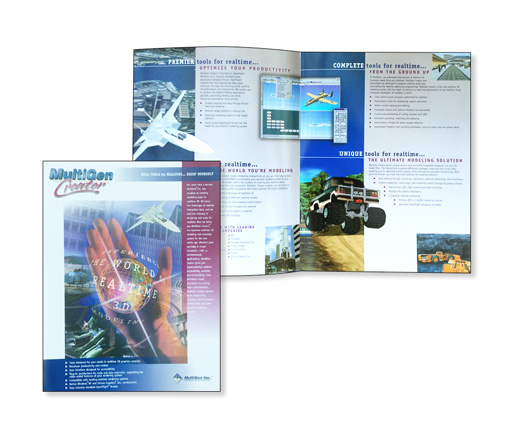 Here is a 4-panel capabilites borchure for a gaming company called Multigen.