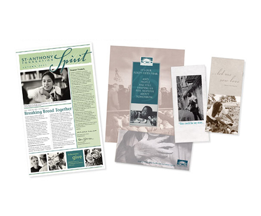 Here are several brochures and a newsletter for St. Anthony Foundation.